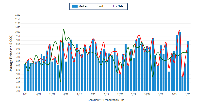 January 2026 Median Price was Neutral, Avg. For Sale Price was Appreciating, and Avg. Sold Price was Neutral**