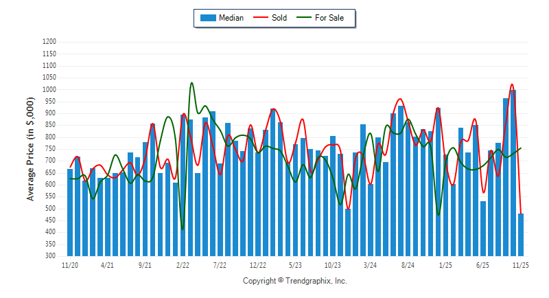 November 2025 Median Price was Neutral, Avg. For Sale Price was Appreciating, and Avg. Sold Price was Neutral**