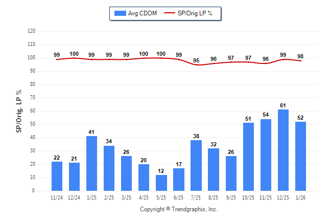 January 2026 Average Continuous Days on Market trend Remains Steady and Sold/Original List Price Ratio Remains Steady**