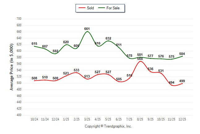 December 2025 Average For Sale Price was Neutral and Average Sold Price was Neutral**