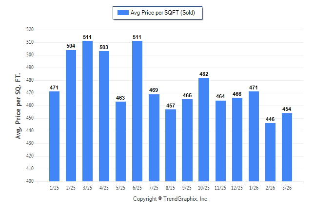 March 2026 Average Sold Price per Square Footage was Neutral**