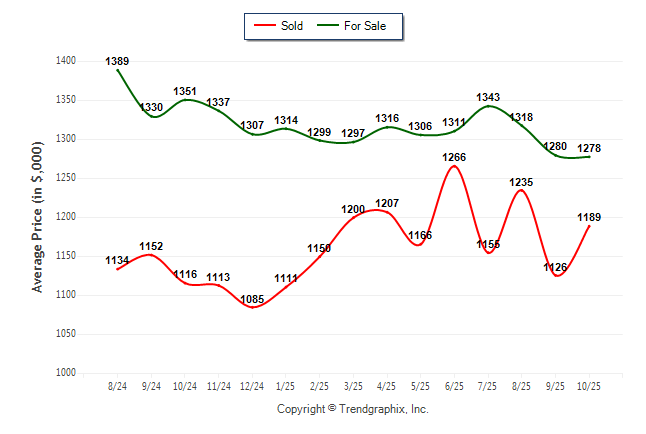 October 2025 Average For Sale Price was Depreciating and Average Sold Price was Neutral**