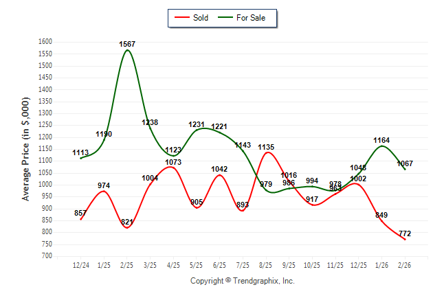 February 2026 Average For Sale Price was Neutral and Average Sold Price was Depreciating**