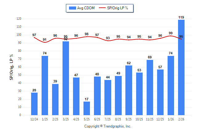 February 2026 Average Continuous Days on Market trend was Rising and Sold/Original List Price Ratio Remains Steady**
