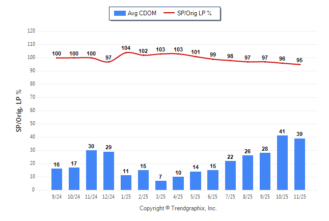 November 2025 Average Continuous Days on Market trend Remains Steady and Sold/Original List Price Ratio was Falling**