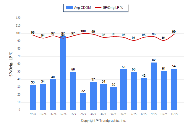 November 2025 Average Continuous Days on Market trend Remains Steady and Sold/Original List Price Ratio was Rising**