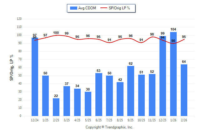 February 2026 Average Continuous Days on Market trend Remains Steady and Sold/Original List Price Ratio Remains Steady**