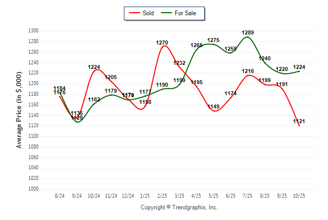 October 2025 Average For Sale Price was Neutral and Average Sold Price was Depreciating**