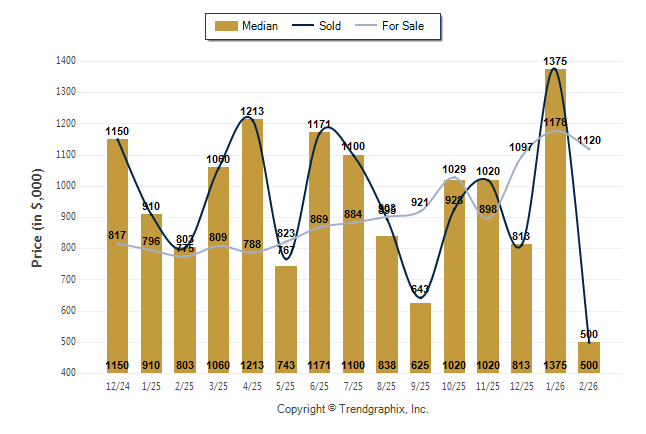 February 2026 Median Price was Neutral, Avg. For Sale Price was Neutral, and Avg. Sold Price was Neutral**