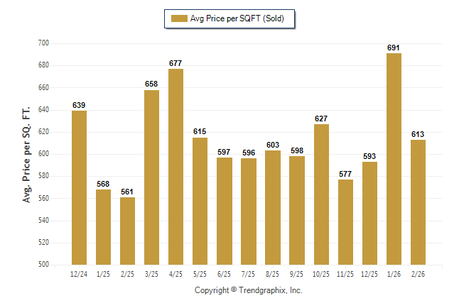 February 2026 Average Sold Price per Square Footage was Neutral**