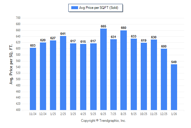 January 2026 Average Sold Price per Square Footage was Depreciating**