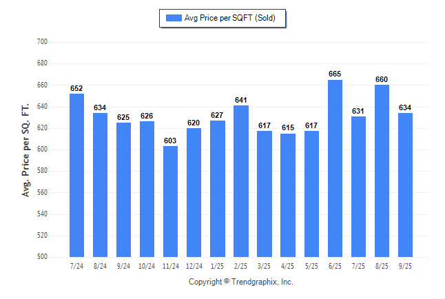 September 2025 Average Sold Price per Square Footage was Neutral**