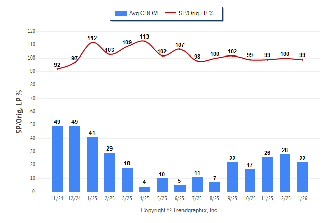 January 2026 Average Continuous Days on Market trend Remains Steady and Sold/Original List Price Ratio was Falling**