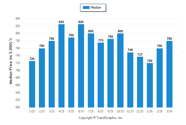 Curnt vs. Same Month 1 Yr Ago: Median Sold Price 0%