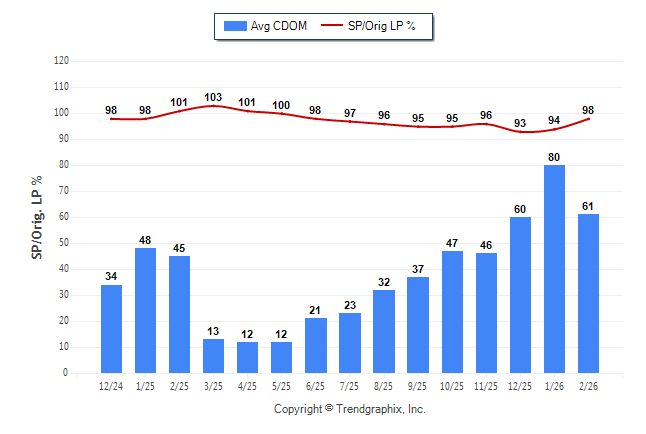 February 2026 Average Continuous Days on Market trend Remains Steady and Sold/Original List Price Ratio Remains Steady**
