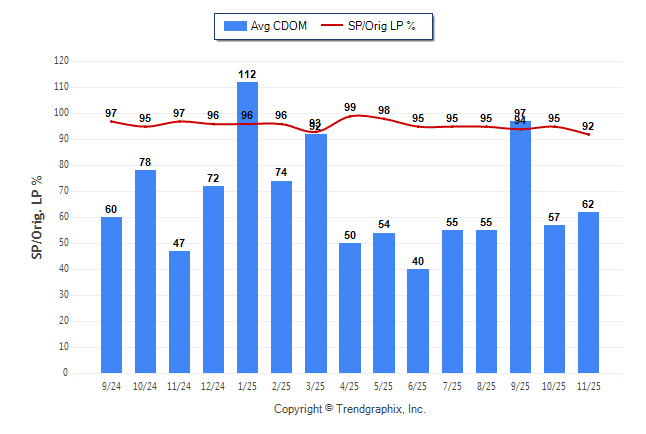 November 2025 Average Continuous Days on Market trend Remains Steady and Sold/Original List Price Ratio was Falling**