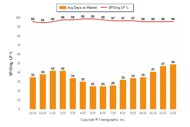 January 2026 Average Days on Market trend was Rising and Sold/Original List Price Ratio was Falling**