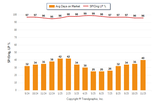 November 2025 Average Days on Market trend was Rising and Sold/Original List Price Ratio was Falling**