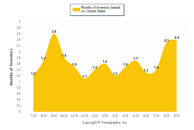 Curnt vs. Same Month 1 Yr Ago: Months of Inventory (Closed Sales)