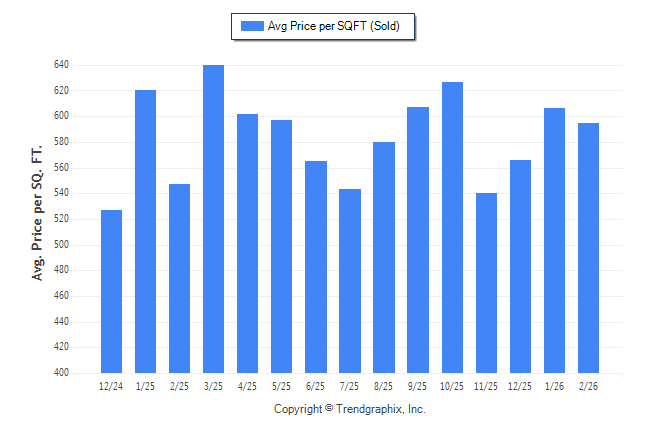 February 2026 Average Sold Price per Square Footage was Neutral**