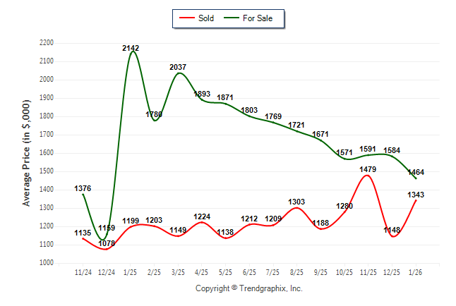 January 2026 Average For Sale Price was Depreciating and Average Sold Price was Neutral**