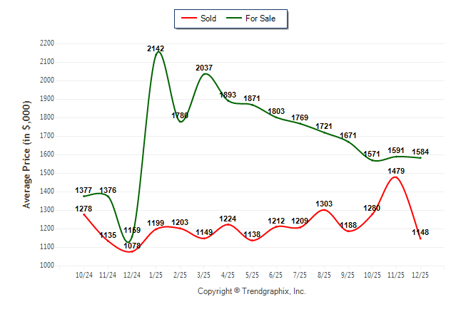 December 2025 Average For Sale Price was Neutral and Average Sold Price was Neutral**
