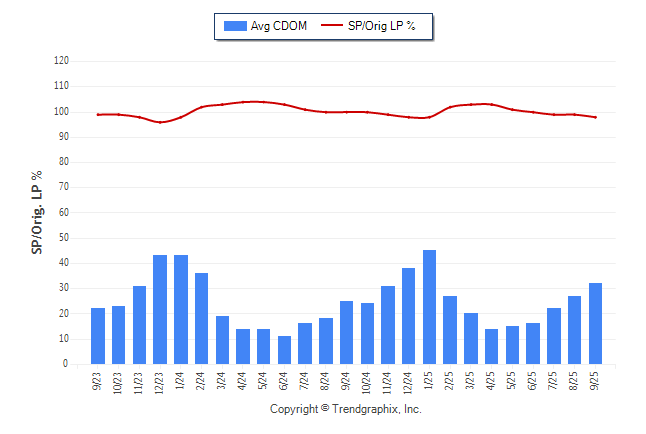 September 2025 Average Continuous Days on Market trend was Rising and Sold/Original List Price Ratio was Falling**