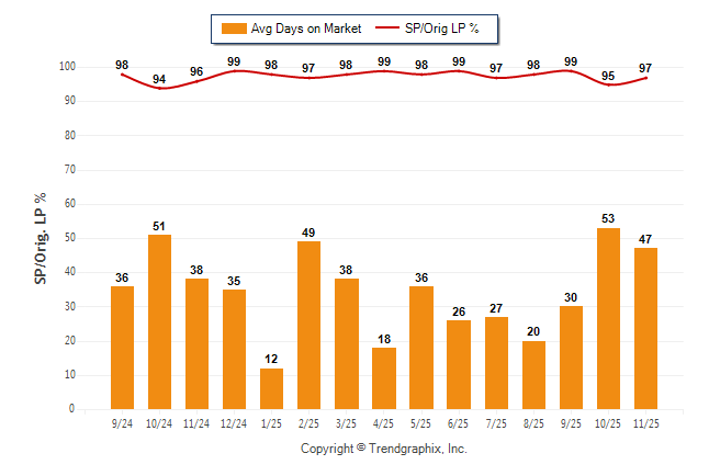 November 2025 Average Days on Market trend Remains Steady and Sold/Original List Price Ratio Remains Steady**