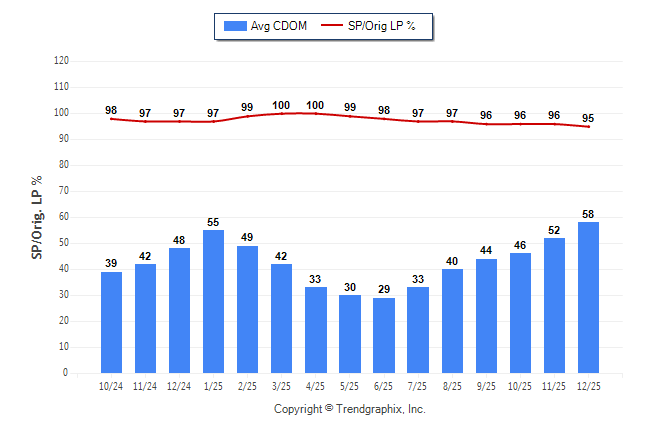 December 2025 Average Continuous Days on Market trend was Rising and Sold/Original List Price Ratio was Falling**
