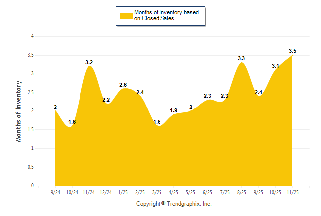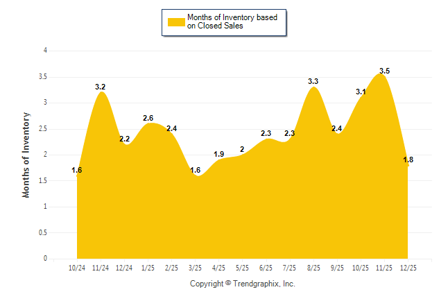 Curnt vs. Same Month 1 Yr Ago: Months of Inventory (Closed Sales)