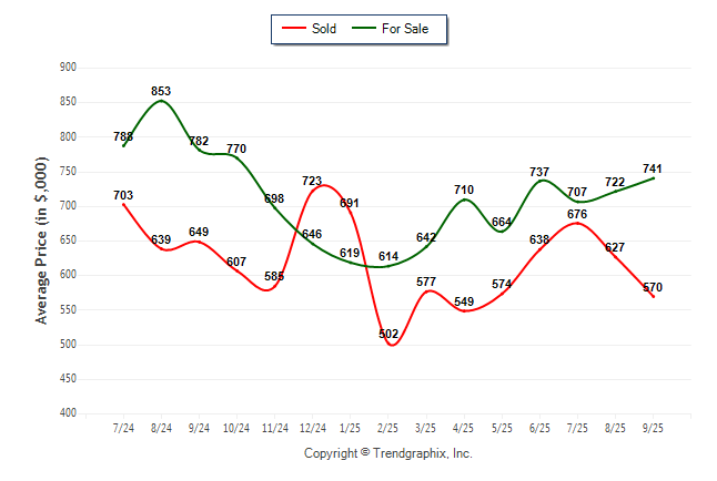 September 2025 Average For Sale Price was Appreciating and Average Sold Price was Neutral**