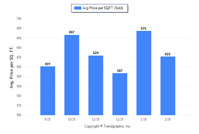 February 2026 Average Sold Price per Square Footage was Neutral**