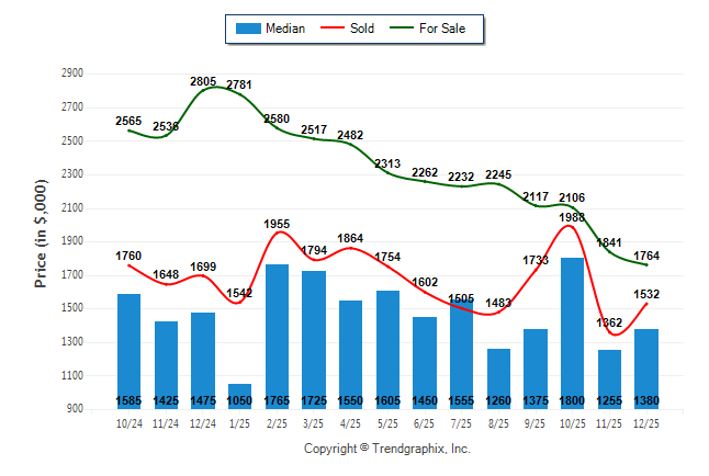 December 2025 Median Price was Neutral, Avg. For Sale Price was Depreciating, and Avg. Sold Price was Neutral**