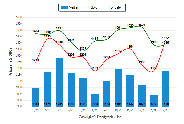 February 2026 Median Price was Neutral, Avg. For Sale Price was Depreciating, and Avg. Sold Price was Neutral**