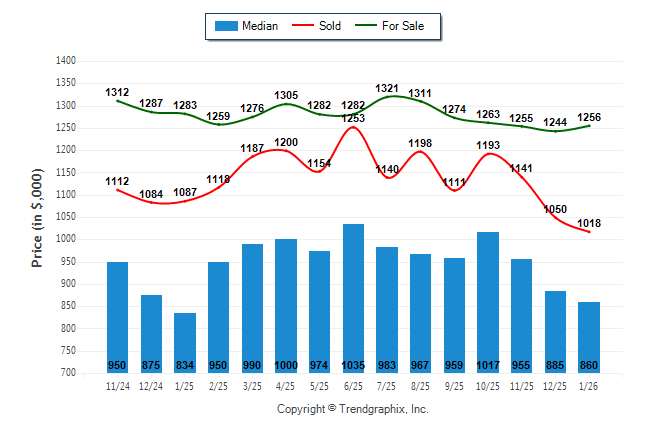 January 2026 Median Price was Depreciating, Avg. For Sale Price was Neutral, and Avg. Sold Price was Depreciating**