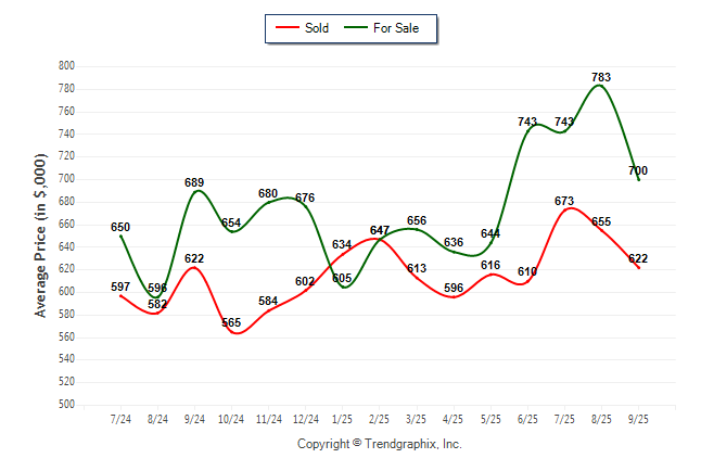 September 2025 Average For Sale Price was Neutral and Average Sold Price was Neutral**