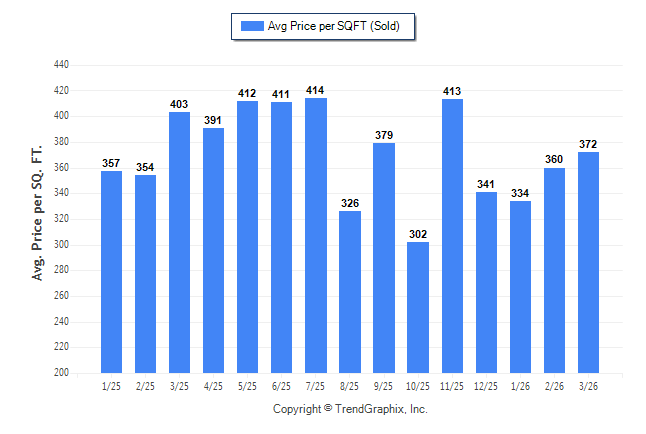 March 2026 Average Sold Price per Square Footage was Appreciating**