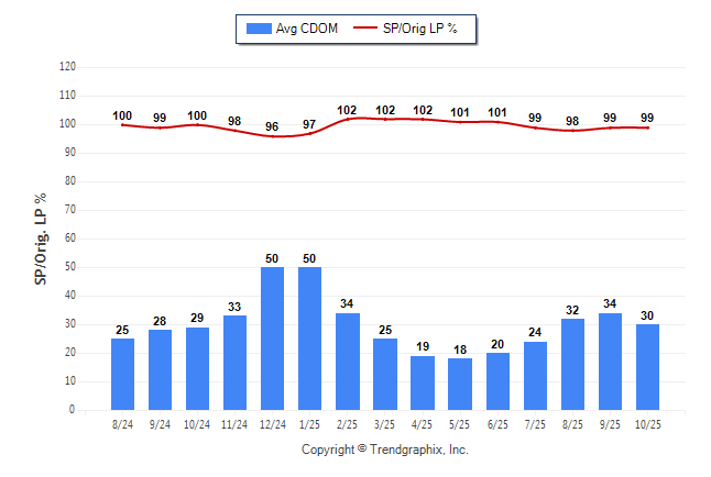 October 2025 Average Continuous Days on Market trend Remains Steady and Sold/Original List Price Ratio Remains Steady**