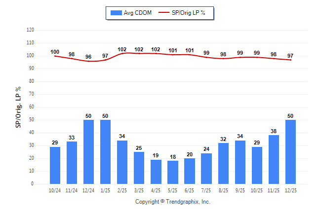December 2025 Average Continuous Days on Market trend was Rising and Sold/Original List Price Ratio was Falling**