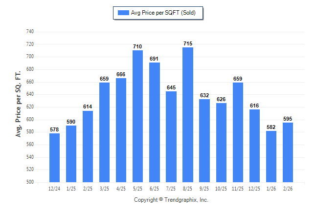 February 2026 Average Sold Price per Square Footage was Neutral**