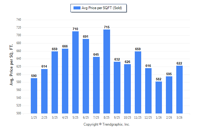 March 2026 Average Sold Price per Square Footage was Neutral**