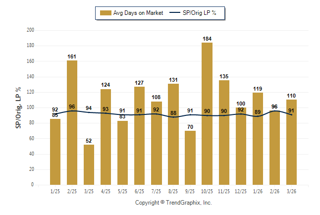 March 2026 Average Days on Market trend Remains Steady and Sold/Original List Price Ratio Remains Steady**