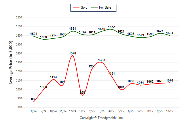 October 2025 Average For Sale Price was Neutral and Average Sold Price was Appreciating**