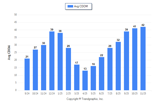 November 2025 Average Continuous Days on Market trend was Rising**