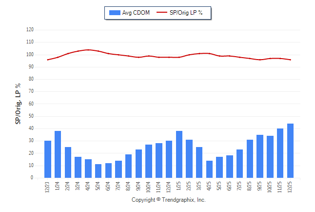 December 2025 Average Continuous Days on Market trend was Rising and Sold/Original List Price Ratio Remains Steady**