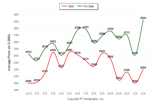 February 2026 Average For Sale Price was Neutral and Average Sold Price was Neutral**