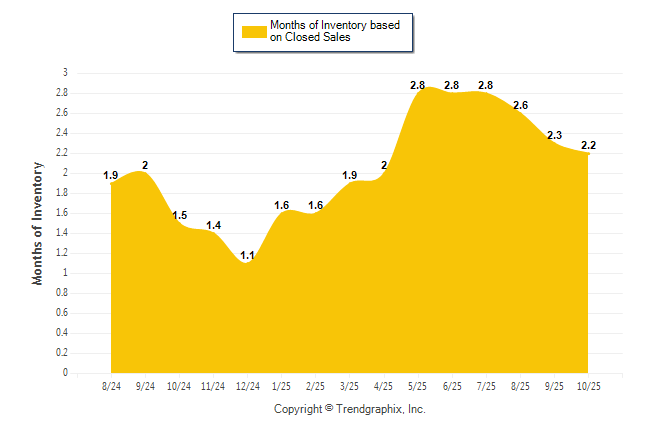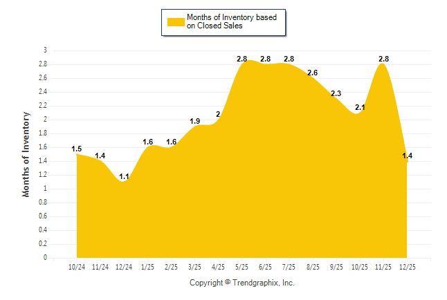 Curnt vs. Same Month 1 Yr Ago: Months of Inventory (Closed Sales)