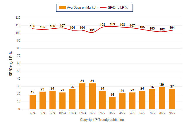 September 2025 Average Days on Market trend Remains Steady and Sold/Original List Price Ratio Remains Steady**