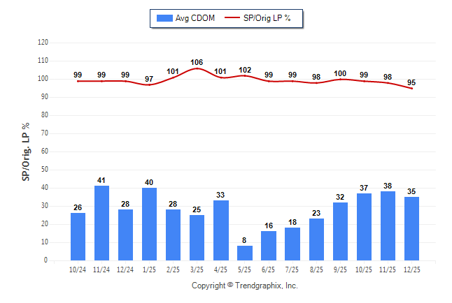 December 2025 Average Continuous Days on Market trend Remains Steady and Sold/Original List Price Ratio was Falling**