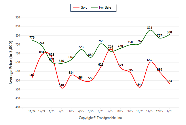 January 2026 Average For Sale Price was Neutral and Average Sold Price was Neutral**